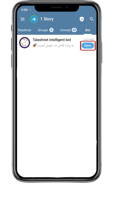 • وارد ربات تلگرام به آدرس talashnet_bot@ شوید.